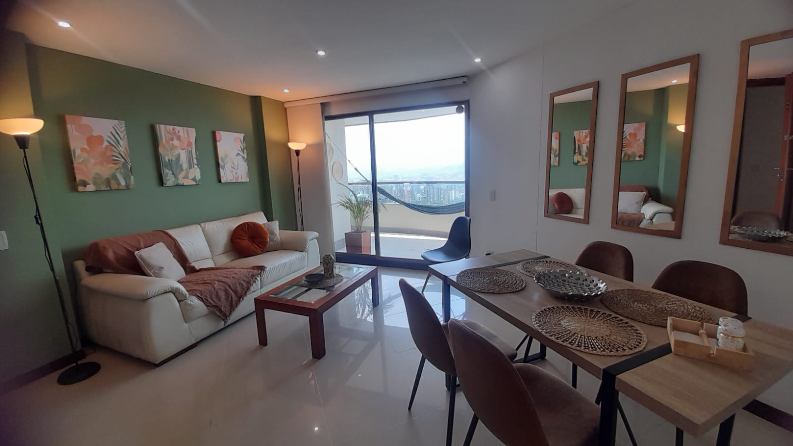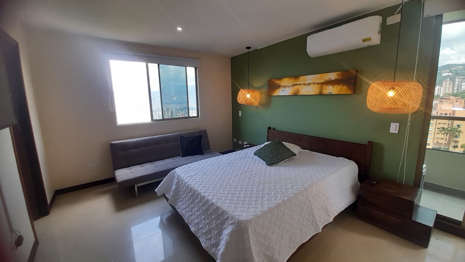Su diseño moderno y espacioso se complementa con una hermosa vista panorámica desde sus dos balcones, donde podrás relajarte y disfrutar de la hermosa vista de la ciudad de Medellín. Además, cuenta con suelos de cerámica y mármol que le dan un toque elegante y sofisticado.