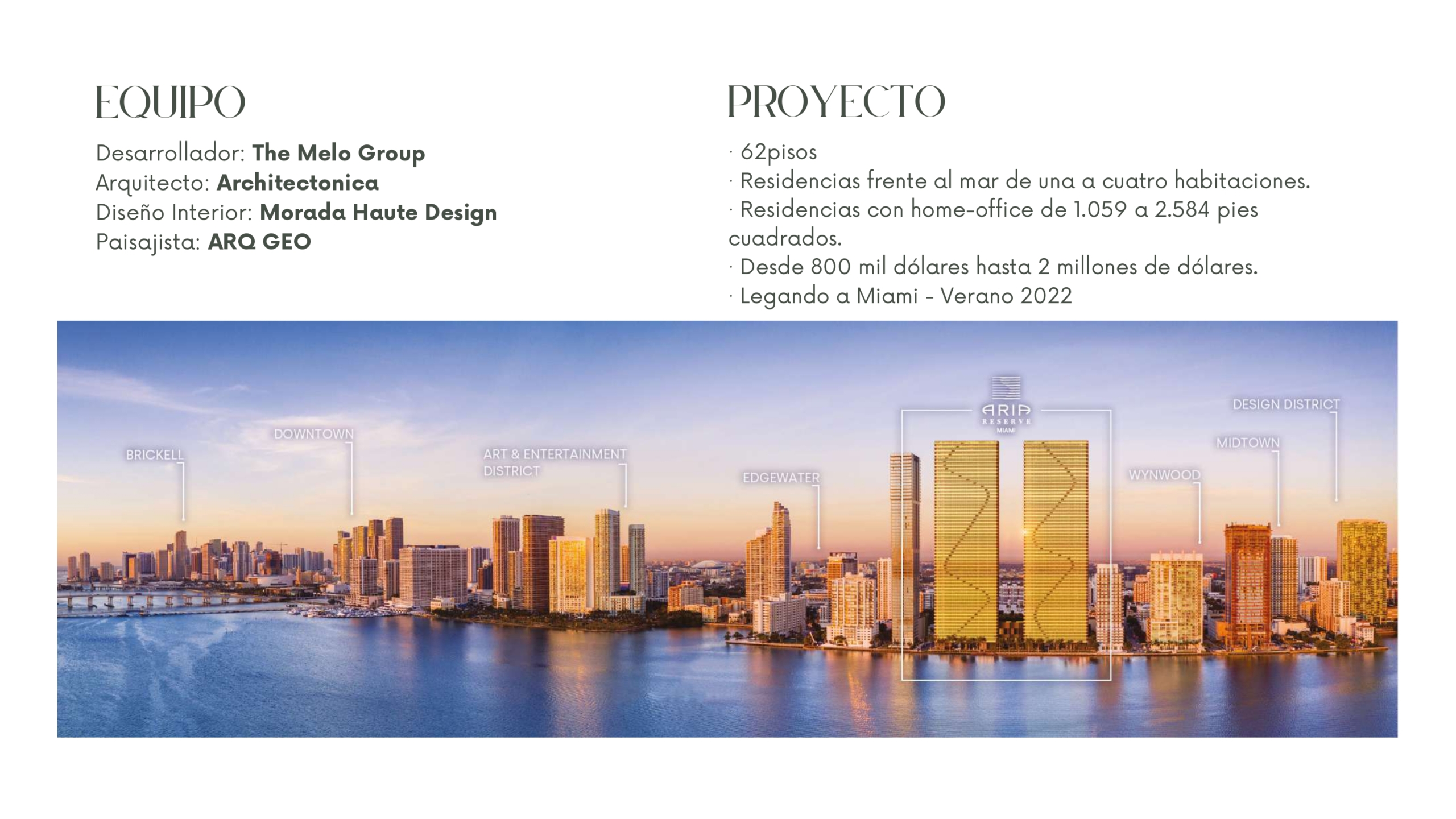 ¡Descubre tu paraíso en Miami! Presentamos un emocionante proyecto inmobiliario de lujo desarrollado por The Melo Group, diseñado por Arquitectónica y con interiores exquisitamente diseñados por Morada Haute Design. Este proyecto único llega a Miami en el verano de 2022 y promete llevar el lujo a un nivel sin igual.