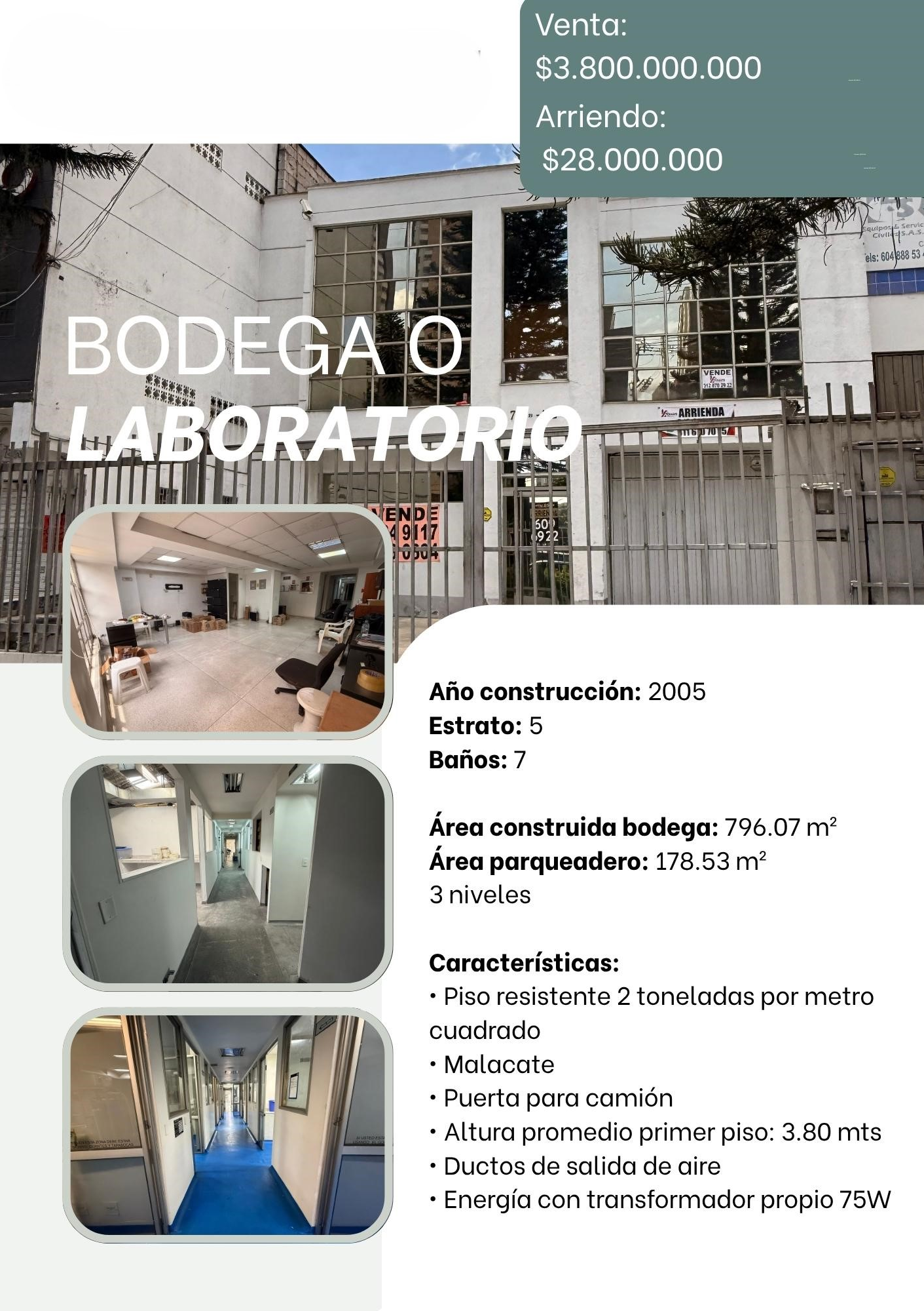 Adquiere esta amplia y funcional bodega ubicada en la ciudad de Sabaneta, Antioquia, una zona en constante crecimiento, ideal para el desarrollo de tu negocio. Con un área construida de 796.07 M2, este inmueble cuenta con todas las comodidades necesarias para que tu empresa prospere.