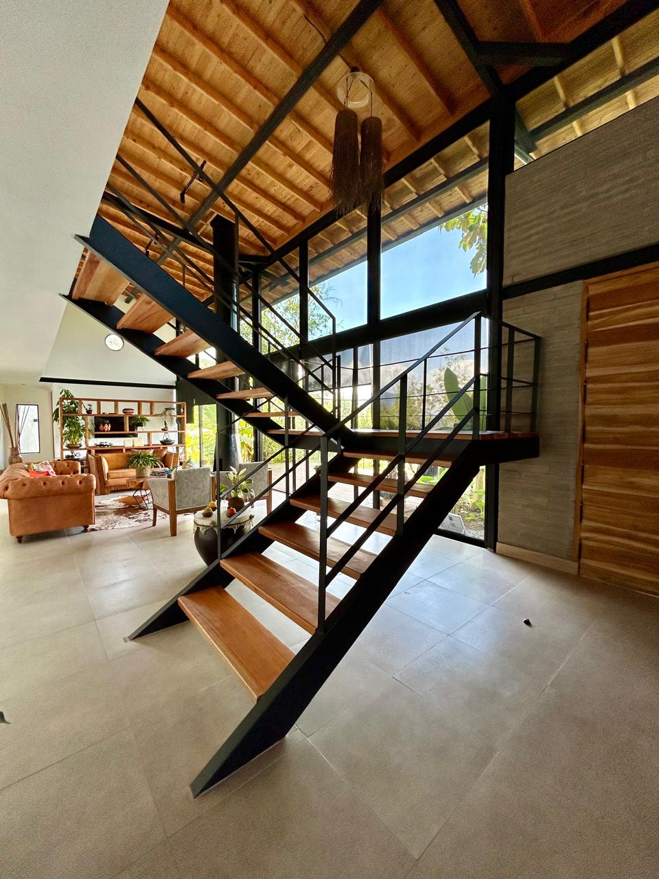 Un área construida de 470 M2 totales divididos en 2 casas: La Casa Principal con un área construida de 350m2 , cuenta con 4 amplias alcobas y 5 baños, ofreciendo un espacio cómodo y acogedor para toda la familia. Además, su distribución interna incluye características como baño auxiliar, baño en habitación principal, clósets, hall de alcobas y una moderna cocina estilo americano, totalmente equipada con electrodomésticos de alta calidad. La Casa de Mayordomo con un área de 120m2 cuenta con 2 habitaciones con baño y vestier, sala, comedor y cocina abierta, zona de ropas, balcón en la alcoba principal y sala.