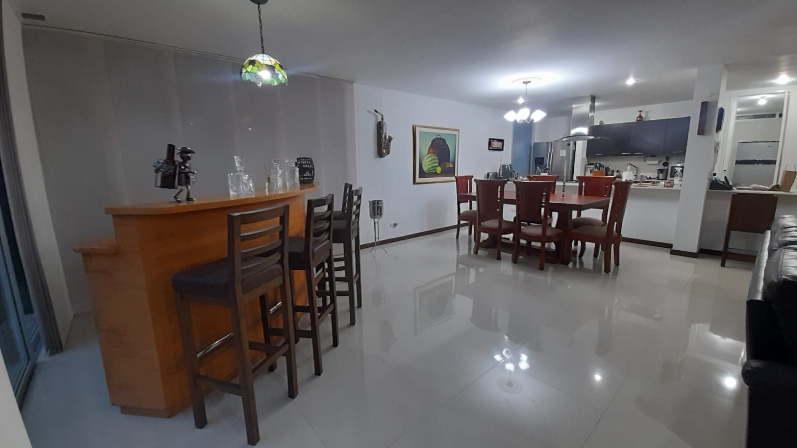 Al entrar en la casa, se encuentra una hermosa vista panorámica desde el balcón, ideal para disfrutar del paisaje y el clima de la zona. La barra estilo americano, integrada en la cocina integral, permite una mayor interacción entre los espacios, creando un ambiente acogedor y funcional. La casa también cuenta con un espacio destinado para una biblioteca o estudio, ideal para trabajar o estudiar desde la comodidad del hogar.