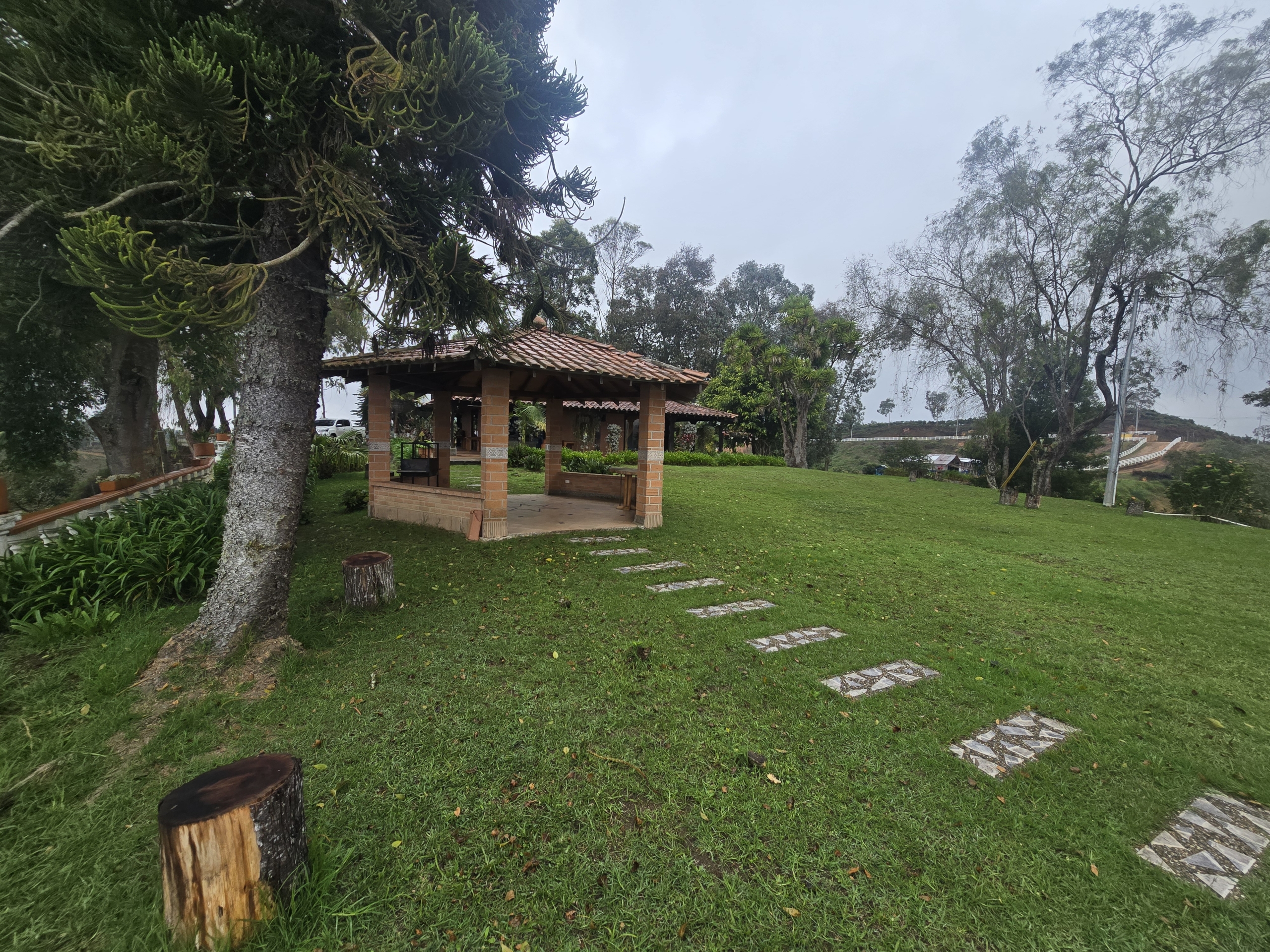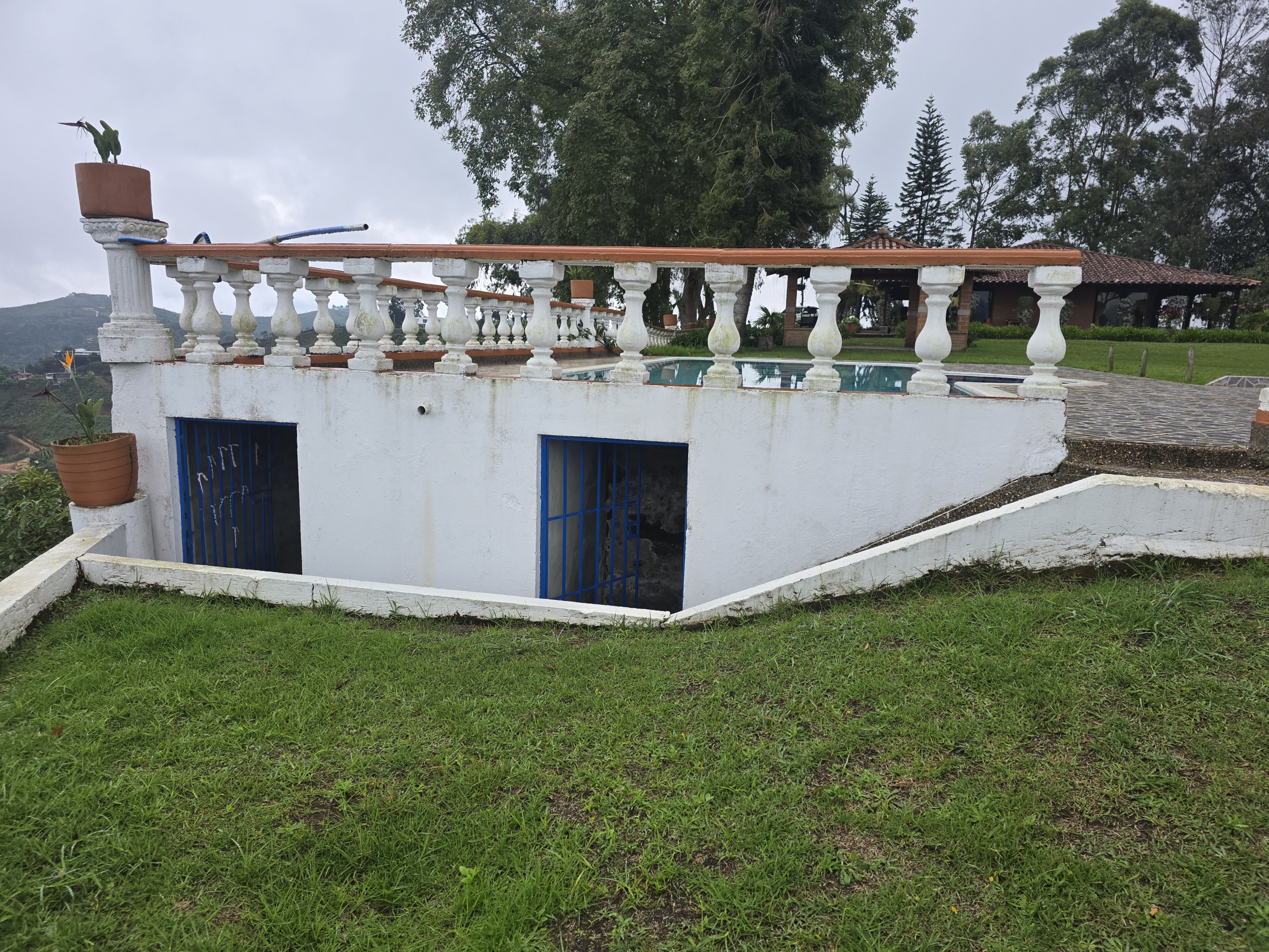 Ademas cuenta con las siguientes construcciones auxiliares: piscina de 45,50 m2, kiosco de 22,90 m2, bodega 1 de 106,00 m2, bodega 2 de 115,00 m2 y casa de mayordomo de 87,00 m2; todas las construcciones descritas anteriormente se encuentran en buen estado de conservación y mantenimiento; adicional a lo anterior, se cuenta con pozos sépticos, nacimientos de agua, lago, tanque de riego, y recientemente se cambió las cercas que delimitan dicha finca. La topografía del sector es moderadamente inclinada con gradientes de pendiente entre el 7% y el 12%.