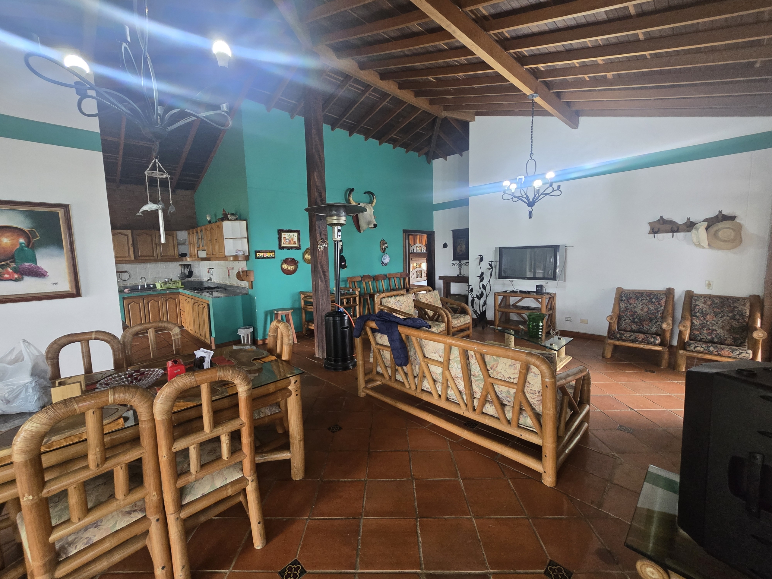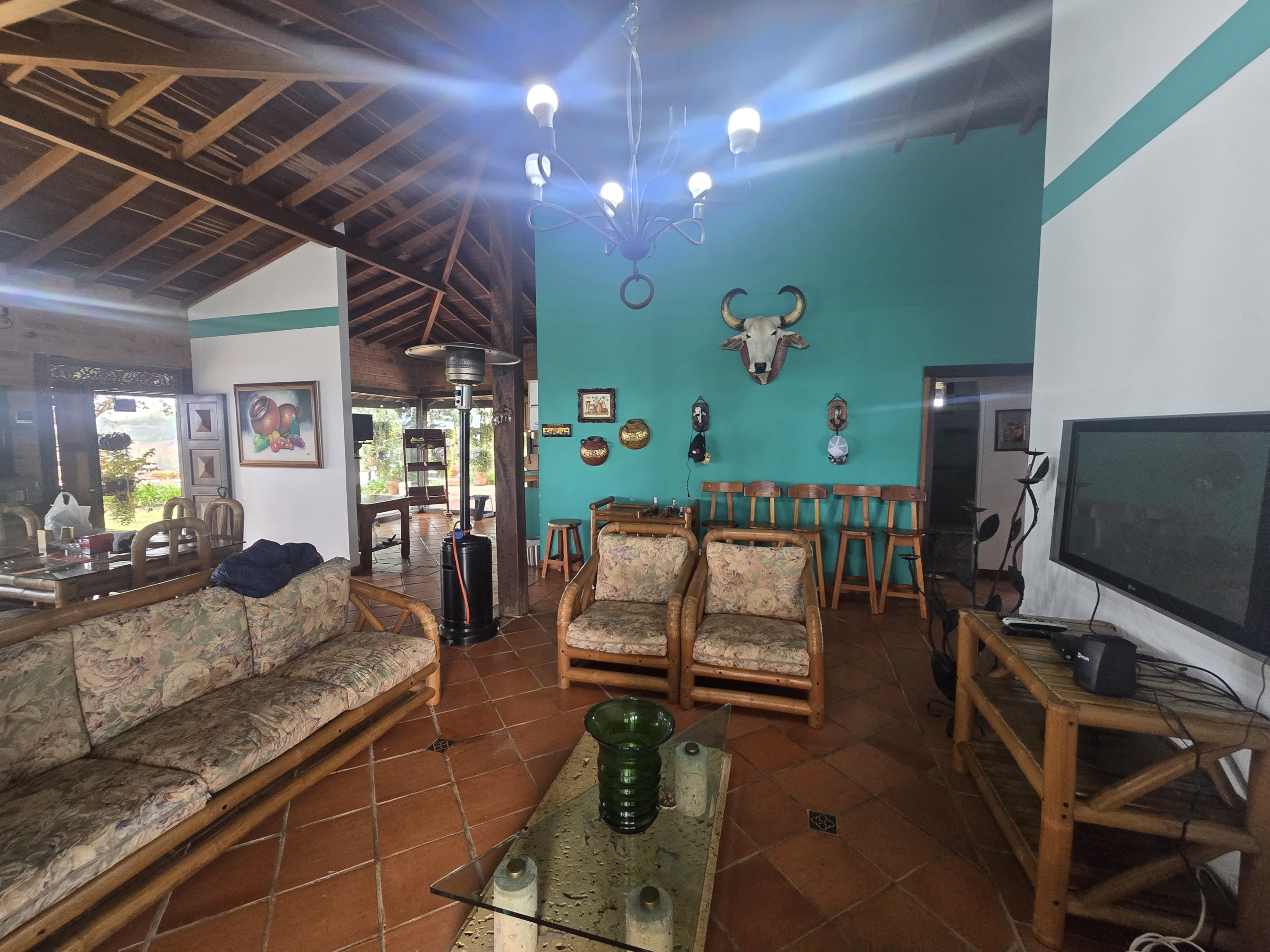 La finca cuenta con casa principal de 231.00m2, cocina Enchapada en cerámica a media altura, con gabinetes superiores e inferiores en madera, mesón en granito de piedra y lavaplatos en acero inoxidable, baños Enchapados en cerámica, cabinados en vidrio templado, con mobiliario bueno carpinteria en madera en puertas internas, techos internos, algunos gabinetes y closets, pisos en baldosa de barro cocido.